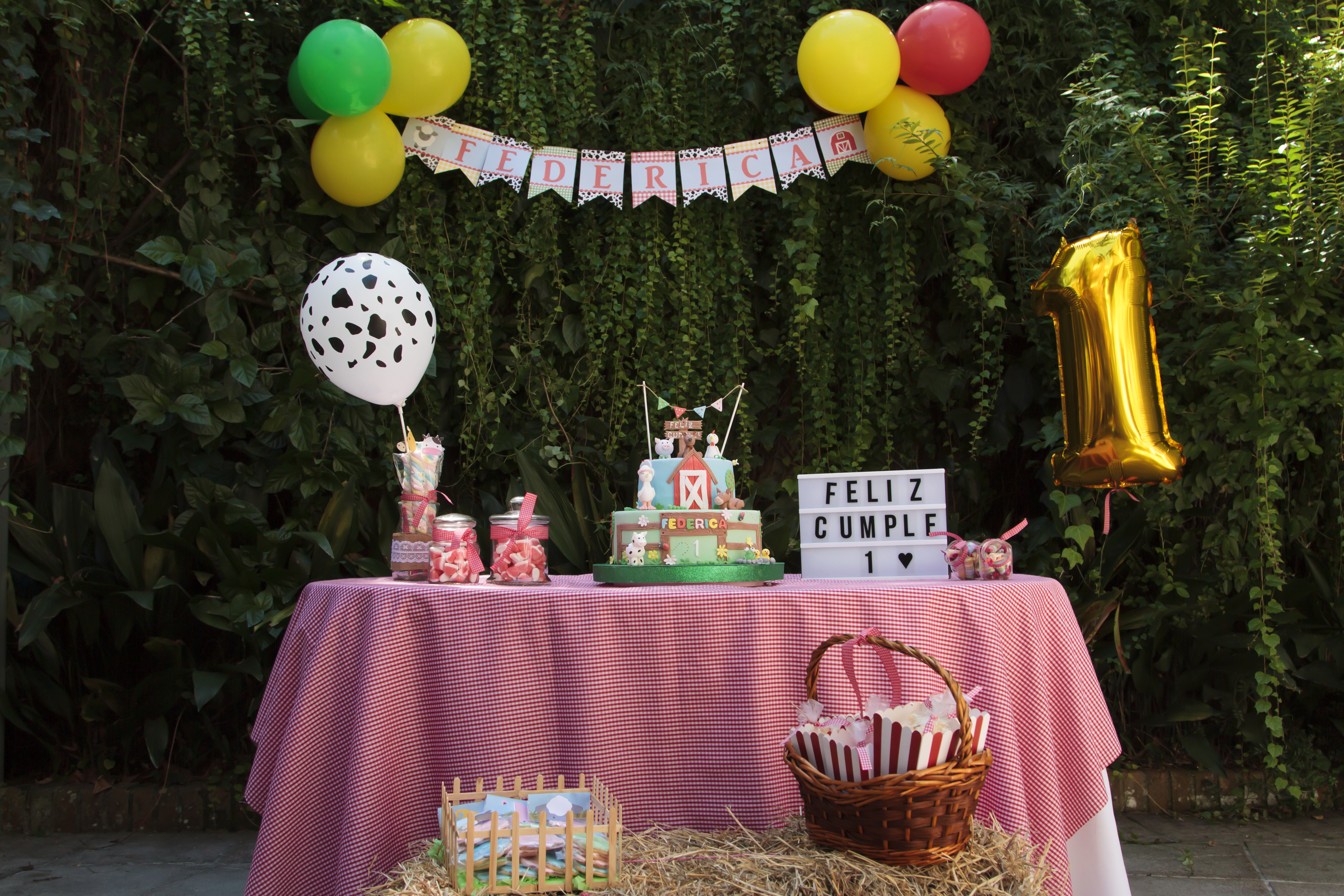 Federica ama los animales de la granja de Zenón. Tomamos eso como insipiración para decorar su primer añito.